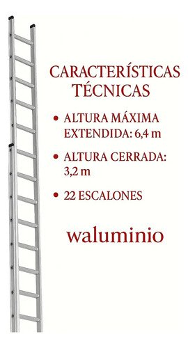 Escalera Extensible de Aluminio 22 Escalones – 6,4 m