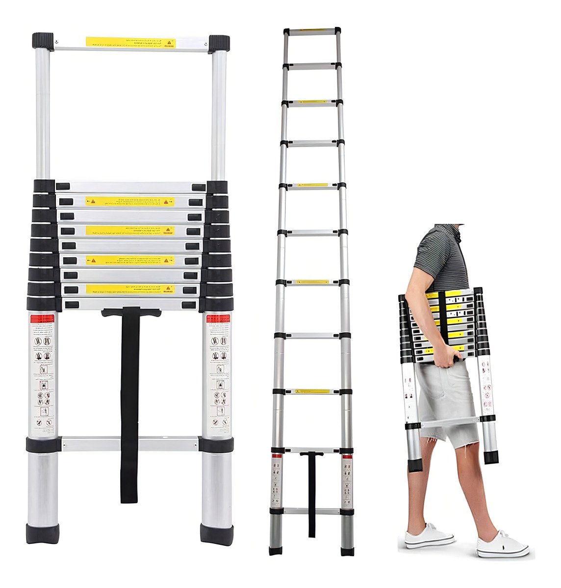 Escalera Telescópica Waluminio Jd1039 Practica 10 Escalones Plateado