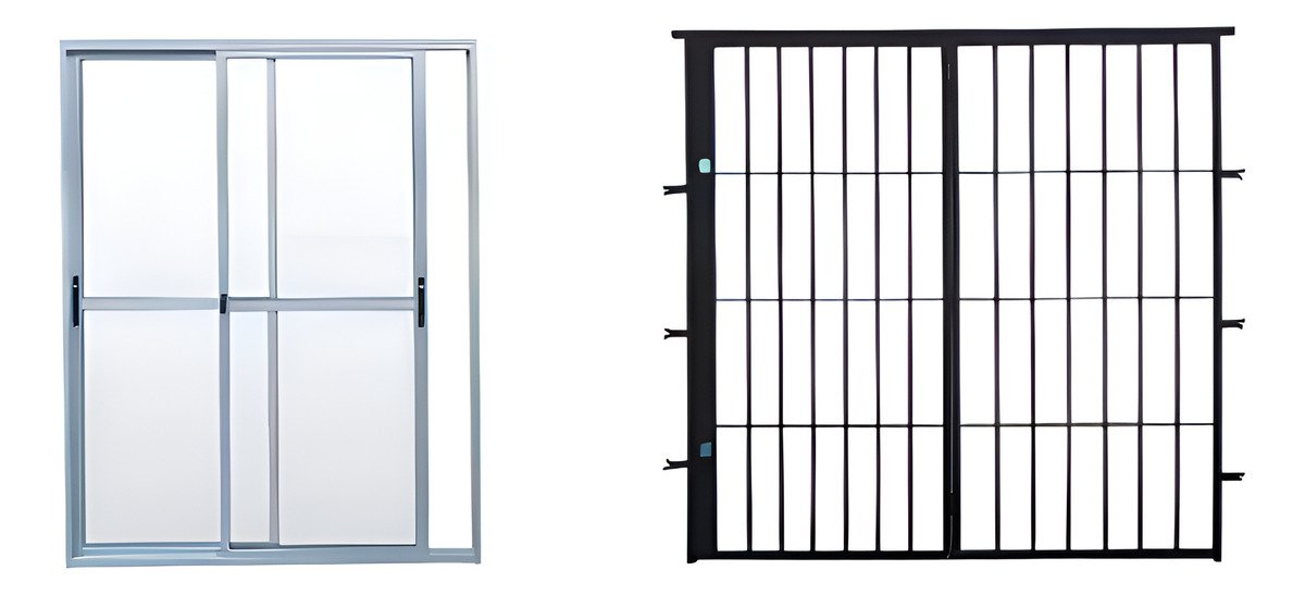 Optimiza tus espacios con esta puerta ventana corrediza de aluminio y vidrio de 200 x 200 cm, que combina diseño moderno y máxima protección gracias a su reja de hierro.