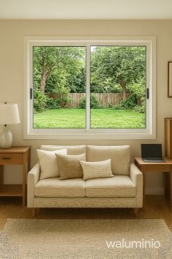 Descubre la elegancia y funcionalidad de la Ventana Corrediza Waluminio, perfecta para iluminar y ventilar tus espacios con estilo. Con dimensiones generosas de 1.50 x 1.20 metros, esta ventana está diseñada para ofrecer una vista amplia y despejada. Disponible en colores versátiles como el clásico blanco, sofisticado negro y cálido simil madera, se adapta a cualquier decoración. La calidad está asegurada con la Serie 25 de aluminio, garantizando durabilidad y resistencia. El vidrio de 4mm de espesor proporciona aislamiento y seguridad, mientras que las cubetas embutidas y el cierre a inyección destacan la atención al detalle. La ventana, que incluye dos hojas corredizas, viene con un acabado pintado que protege y embellece el marco de aluminio. Además, está lista para una instalación directa, facilitando su montaje en tu hogar. Aunque no incluye reja ni mosquitero, su diseño rectangular y el espesor de 5 cm del marco hacen de esta ventana corrediza Waluminio una elección inteligente para quienes buscan calidad y estilo.